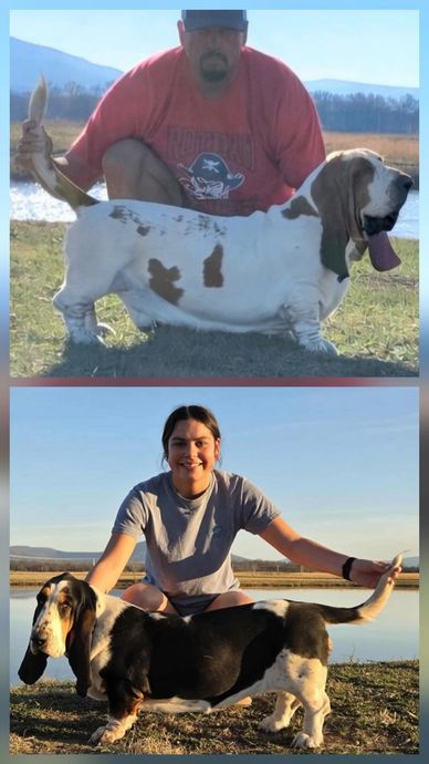 Dallas is a stunning male with excellent bone, long ears, and a calm, level-headed personality. Winnie is sweet-natured, people-focused, and loves to cuddle. Together, they are expected to produce puppies with beautiful heads, long low bodies, heavier bone, and the ideal “lazy-day, family companion” personality that fits perfectly into a home environment.